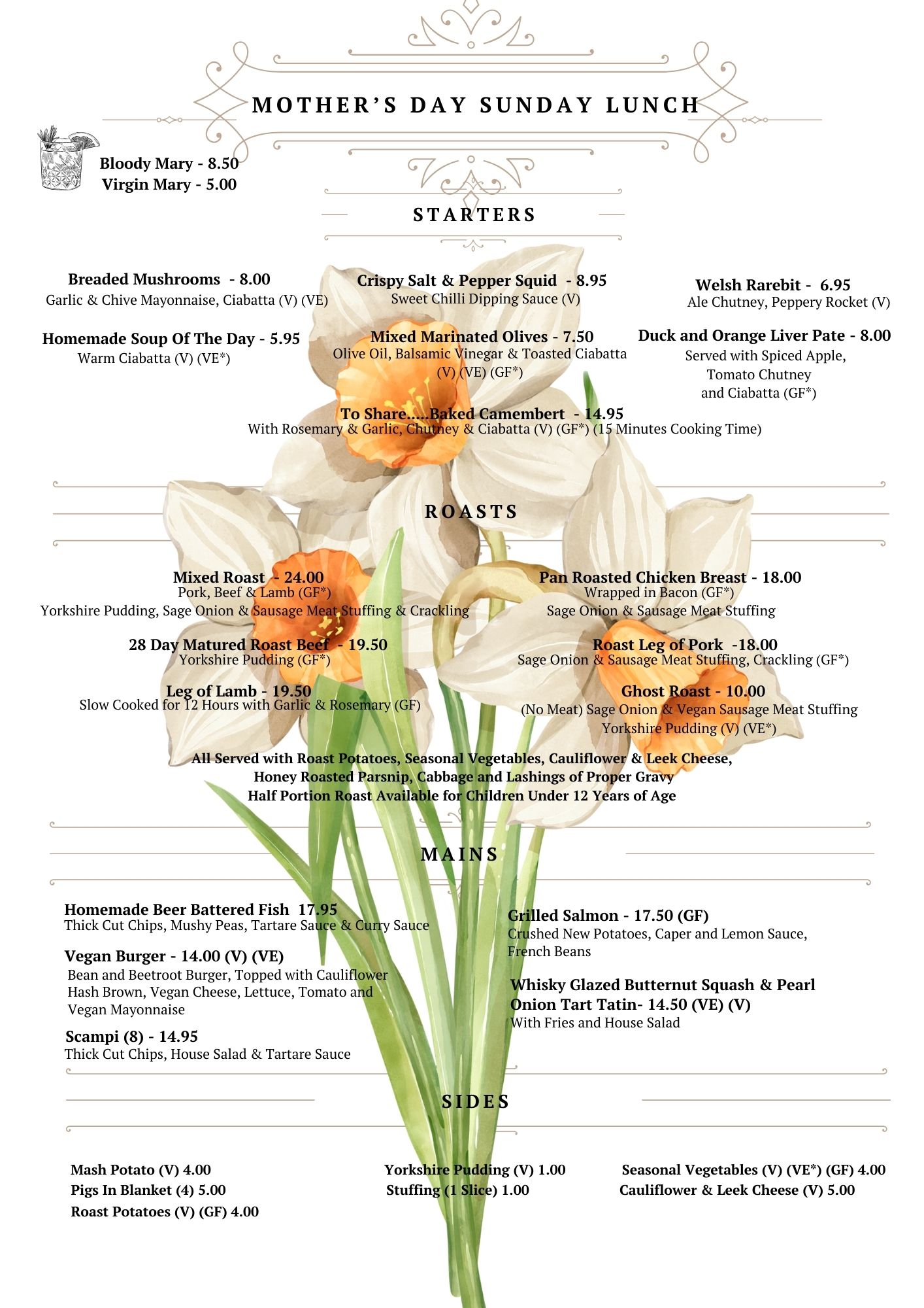 We serve home-cooked pub food, all day Monday-Saturday and on a Sunday our legendary Sunday Roast from 12pm-5pm